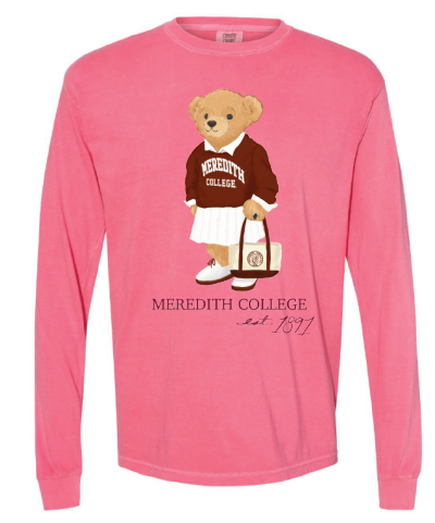 Classic comfort colors t-shirt in Crunchberry, available short or long-sleeved featuring our cute MereBear design!